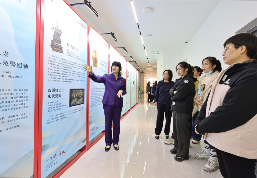 上博专业讲解员在社区为居民讲解“上海6000年” 王凯 摄(下同)